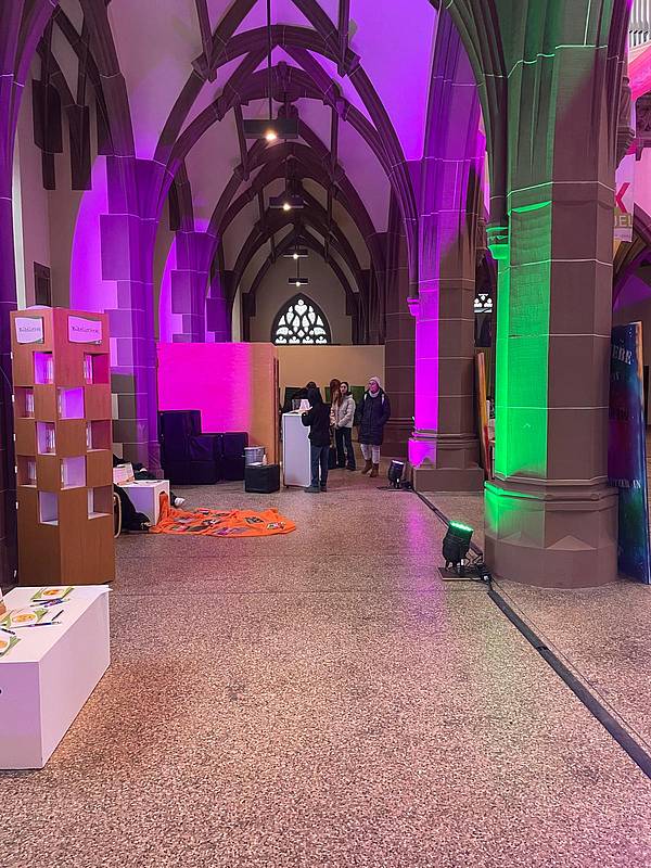 In der Jugendkirche Samuel wurden die Jugendlichen von Arturo empfangen, der für sie abwechslungsreiche und anschauliche Stationen vorbereitet hatte, an denen sie Grundlagen des christlichen Glaubens und der Glaubenspraxis kennenlernen und vieles ausprobieren konnten.
