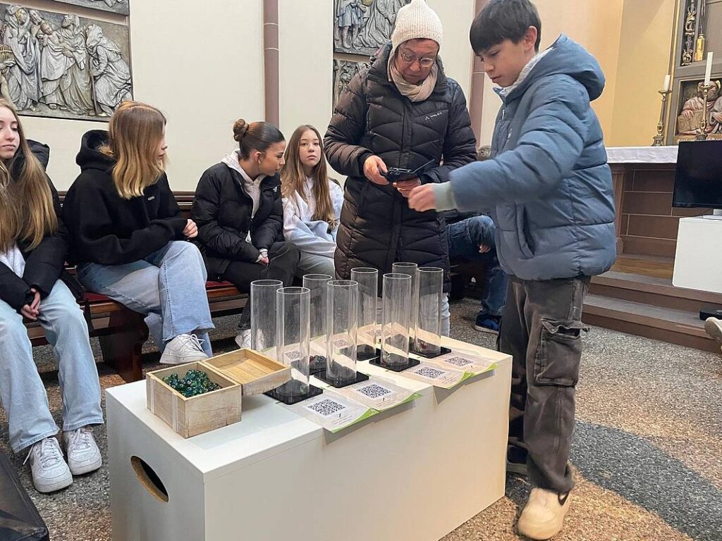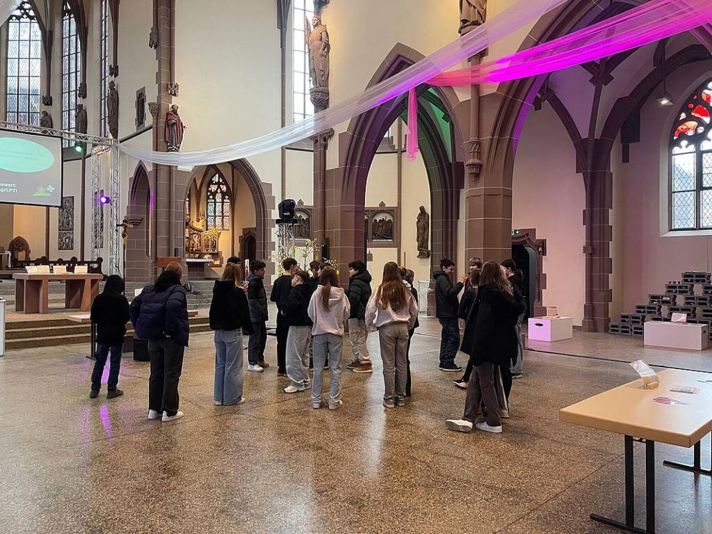 Als die Schülerinnen und Schüler der siebten Klassen erfuhren, dass sie im Rahmen des alljährlich von der Schulseelsorge organisierten Klostertages ein echtes Kloster besuchen und mit einem richtigen Mönch sprechen würden, hatten sie viele Fragen. Und so machten sich die Klassen 7a und 7b am 24. Januar 2025 auf den Weg nach Mannheim und 7c und 7d folgten am 7. Februar 2025. Dort besuchten sie das Pfarrkloster der Franziskaner an der Bonifatiuskirche und die Jugendkirche Samuel. Begleitet wurden sie von Mitgliedern des Schulseelsorgeteams (Frau Klünder, Frau Muth, Herr Pfeifer und Frau Weckler) sowie Carolin, Isaac, Naida und Wilma aus der Q2. Der Projekttag dient dazu, den Schülerinnen und Schülern unterschiedliche Formen des kirchlichen Lebens nahezubringen.