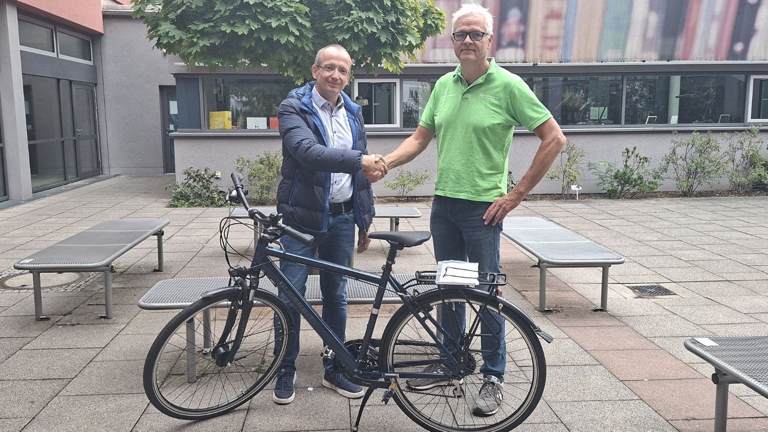 Dank des Preisgeldes aus dem Wettbewerb Schulradeln konnte ein neues Leihfahrrad angeschafft werden. Die feierliche Übergabe erfolgte durch Herrn Hofmann vom Radhaus Viernheim, der das Rad persönlich an die Schule übergab.
