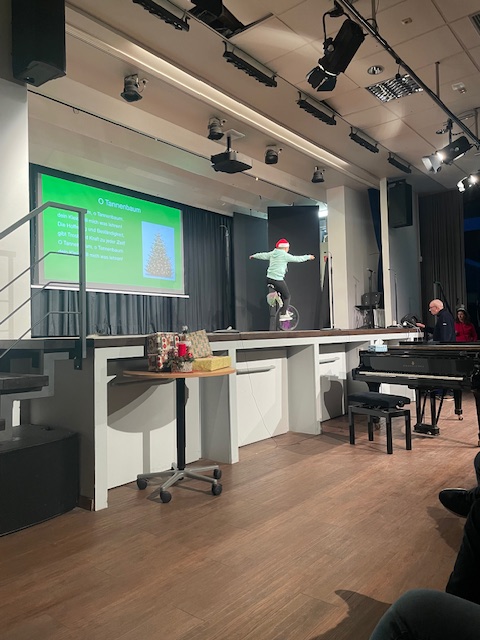 Es war wie immer ein großartiges Erlebnis, die unterschiedlichen Talente der Schülerinnen und Schüler zu sehen! In der Pause konnten die Besucherinnen und Besucher auf dem Weihnachtsmarkt frische Waffeln, Glühwein, Kinderpunsch und Kuchen genießen. Es gab sogar Dosenwerfen mit kleinen Gewinnen. Den Abschluss bildete wieder ein gemeinsamer Tanz auf der Bühne mit allen, die Lust hatten. Die tolle Stimmung konnte so von allen mit nach Hause genommen werden.