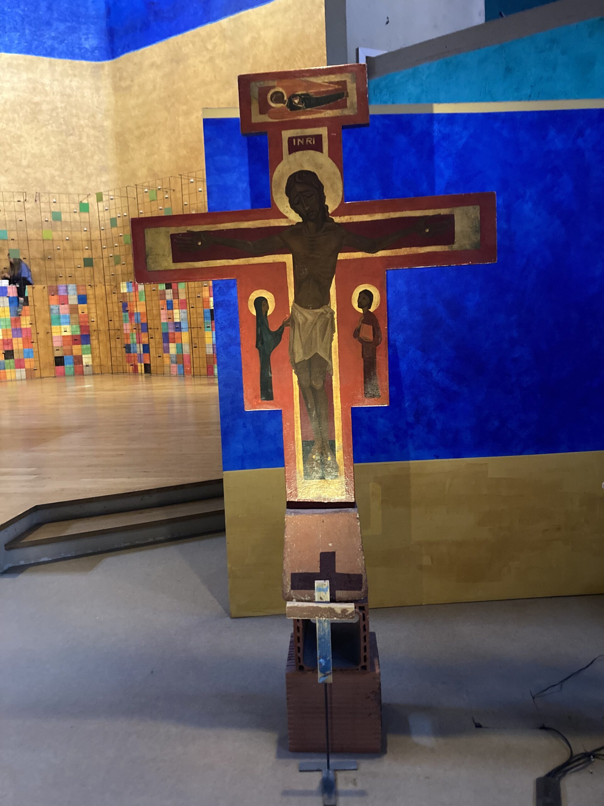 Vor dem Taizékreuz zur Ruhe zu kommen, in Stille zu verweilen, den Gesängen zu lauschen oder selbst mitzusingen, die Tageslesung auf sich wirken zu lassen und einen Segen für den Abend zu empfangen: das sind die Elemente des Gebetes in dieser halben Stunde.
